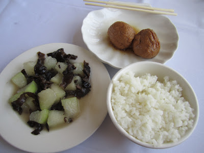 Breakfast: Cucumber & Seaweed Salad, Rice and Tofu Balls