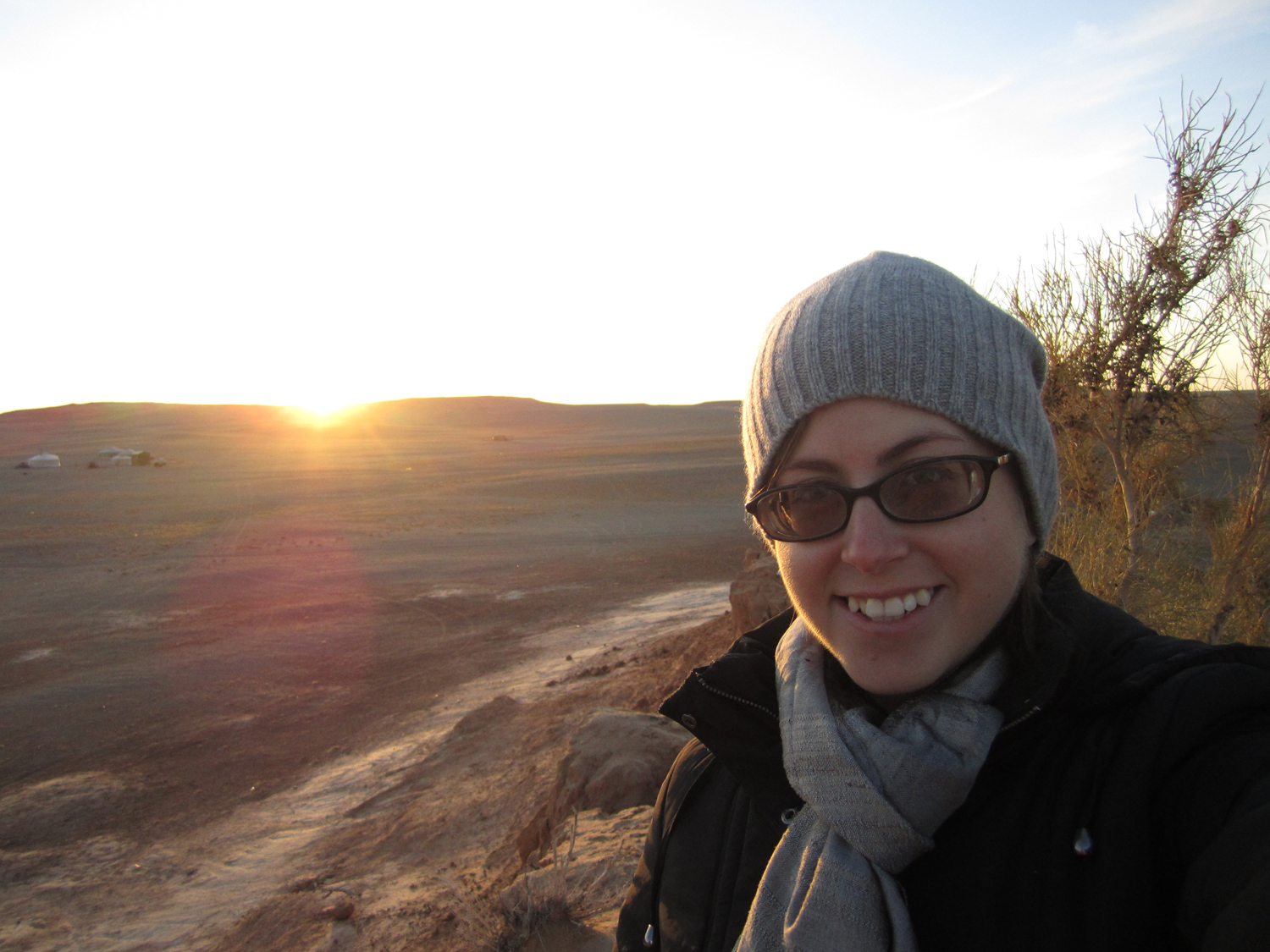 6:30pm – Conor, Denis and Murtaza play Frisbee while Lara, Jacqueline and I check out the nearby hills. The area is known for “having trees,” (!?!) which are really more like tall shrubs. Collect firewood on our way back to the Ger.